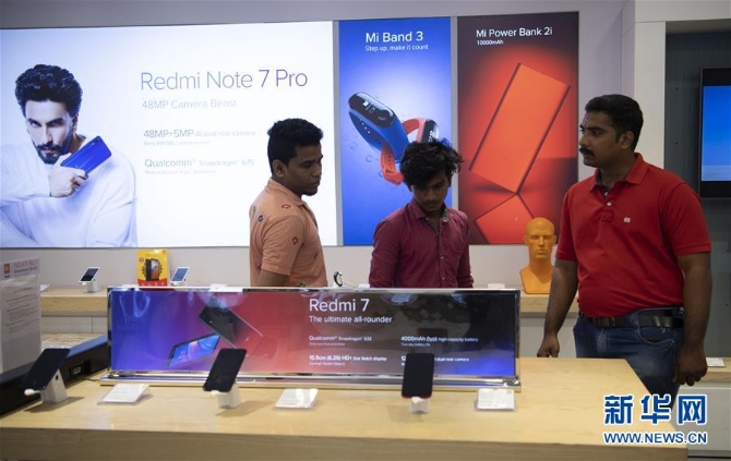 这是在印度金奈的一家商场,人们在中国品牌小米的门店购买手机(2019年10月8日摄)。 新华社记者 吕小炜/摄