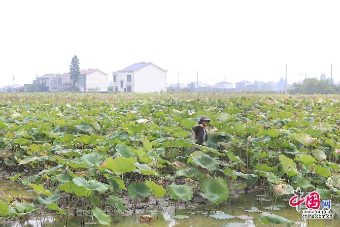 在望城区乔口镇盘龙岭村,“荷虾种养结合”的绿色生态模式融合经济效益和观赏价值。中国网记者 伦晓璇 摄