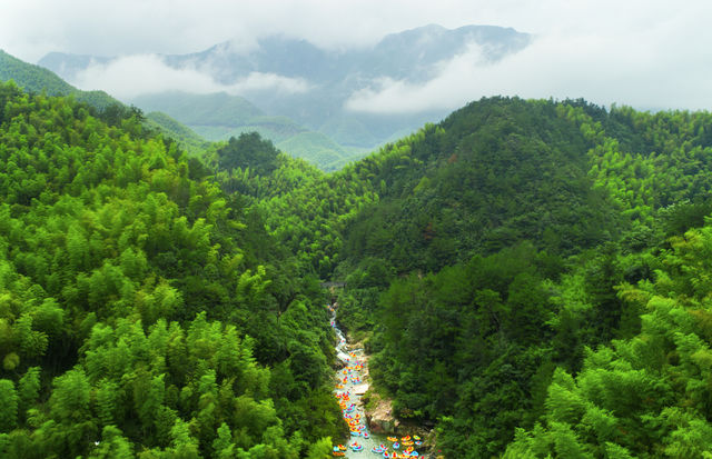 2017年,余村接待游客50万人次,旅游总收入3600多万元,带动农民人均增收5000多元。