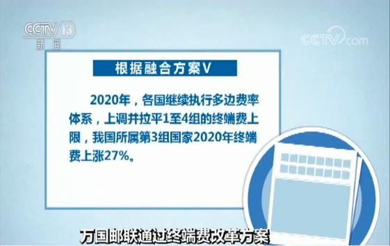 昨天(14日),国家邮政局召开新闻通气会,介绍了日前举行的万国邮联第三次特别大会做出的有关决定。大会通过了终端费改革融合方案V,我国所属第3组国家2020年终端费将上涨27%。