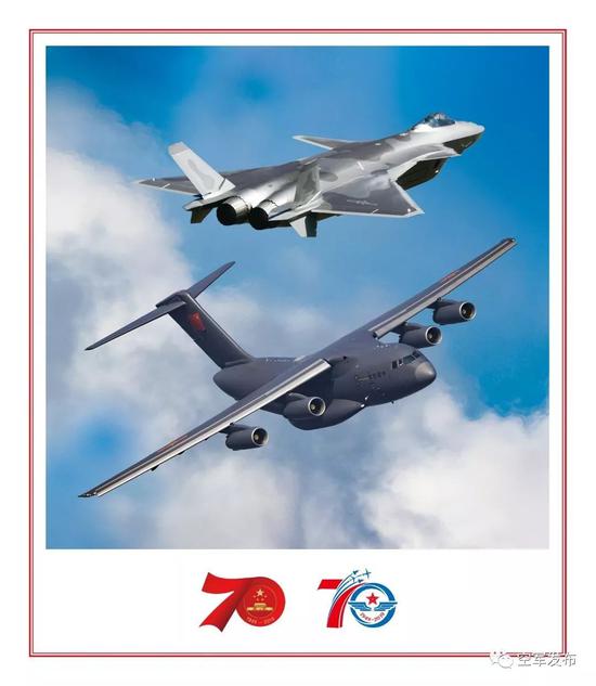 庆祝新中国成立70周年大阅兵,歼-20五机编队,运-20三机编队,首次飞越天安门,接受祖国和人民的检阅。