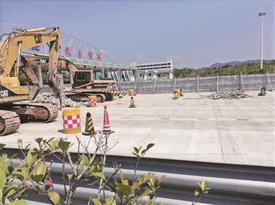 10月中旬,广东省交通集团平兴高速公路八尺主线收费站实体拆除,路面恢复工程顺利完工。八尺主线站实体改造前共有15条收费车道,其中ETC车道2条。改造后,平兴高速往江西方向最左侧的4条收费车道拆除,其余11条收费车道、收费岛及附属设施给予保留,以供后期规划使用。