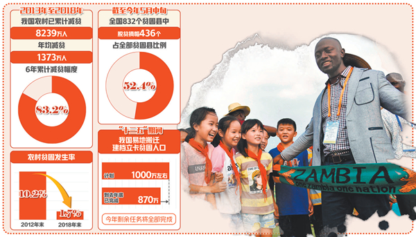 新中国成立之初,是当时世界上最贫穷的国家之一,老百姓普遍吃不饱、穿不暖。70年来,中国人民自力更生、艰苦奋斗,累计减少贫困人口8亿余人,对全球减贫贡献率超过70%。2013年至2018年,每年有1200多万人稳定脱贫,贫困发生率从10.2%下降到1.7%。中国由此成为全球最早实现联合国千年发展目标的发展中国家,联合国秘书长古特雷斯对此大为赞赏,称赞“中国是为全球减贫作出最大贡献的国家”。