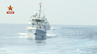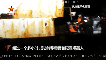 海警人员发现了一艘涉嫌走私毒品的船只。