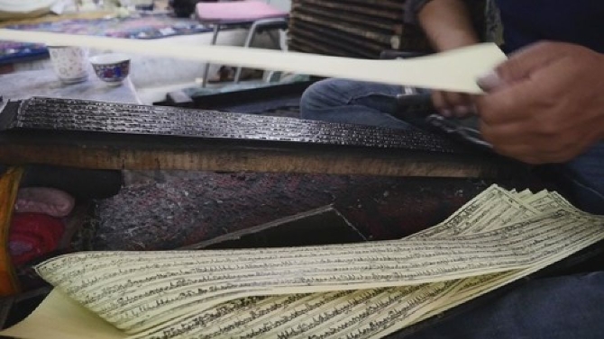 西藏尼木县“非遗扶贫就业工坊”——民族雕刻手工艺有限公司员工在印制藏文经文(9月9日摄)。 尼木是西藏拉萨市一个有名的文化县。它是藏文创始人吞弥·桑布扎的故乡,又以“尼木三绝”藏香、藏纸、普松雕刻远近闻名。如今,这些传承千百年的文化遗产,正为当地脱贫致富带来生机。新华社记者何程/摄