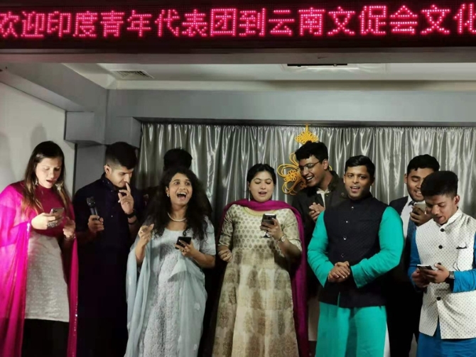 随后,我国多位知名艺术家和印度青年代表团代表轮流表演了《撒伲欢歌》《宝莱坞之夜》《万马奔腾》《新的感觉》《梨园迎春》等多个精彩的文艺节目,获得了阵阵掌声。著名剪纸艺术家汪元在现场为每一位印度朋友剪了一幅个人肖像,云南省中华文化促进会主席秦桂珍、副主席兼秘书长李春雨、副主席王仲德、陈亚萍则为印度朋友们赠送了民族褂和绣花帽。