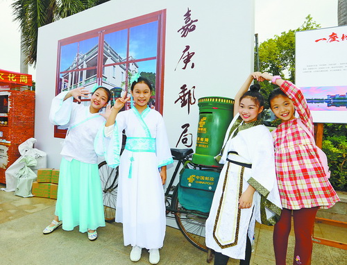 去年读者节首届嘉庚文化周活动上,小读者在嘉庚邮局展板前留影。(资料图 本报记者张奇辉/摄)