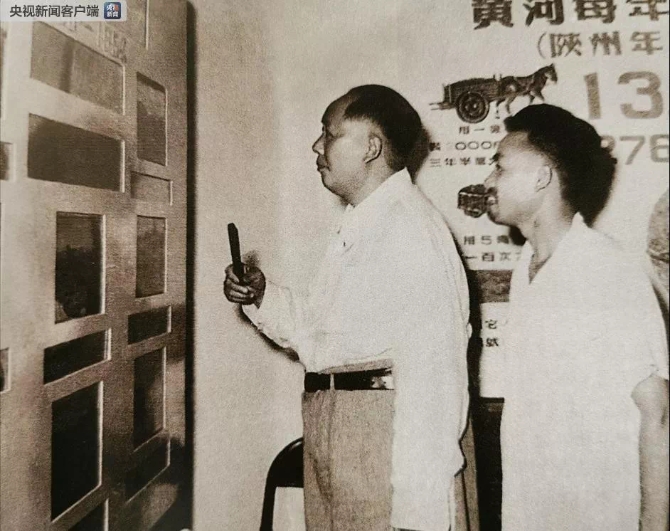 31日,毛泽东同志登上郑州邙山小顶山,察看邙山水库坝址和黄河形势。摄影师为我们留下了这历史性的一刻。