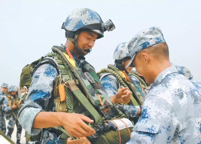是空降兵官兵打着“黄继光生前所在部队”的红旗