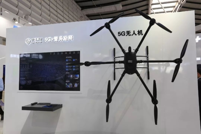 另一侧的5G+警务勘察展台,展示了5G网络结合5G无人机等设备,真正实现“科技强警,服务实战”。