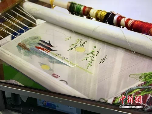 5G+8K直播刺绣。中新网 吴涛 摄