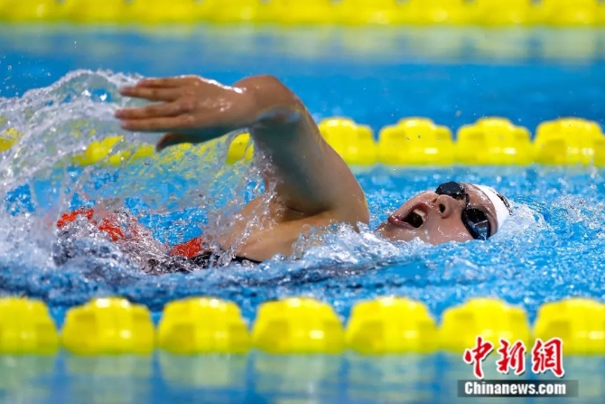 吴惠敏在女子100米混合救生决赛中。(中新社记者 富田 摄)