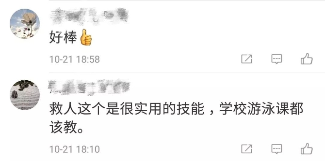 对于很多观众来说,水上救生作为一个竞技项目还是非常新奇的,他们看了中国队的比赛,有些夸奖运动员表现出色,有些则深入思考,希望学校的游泳课可以引入这个项目。