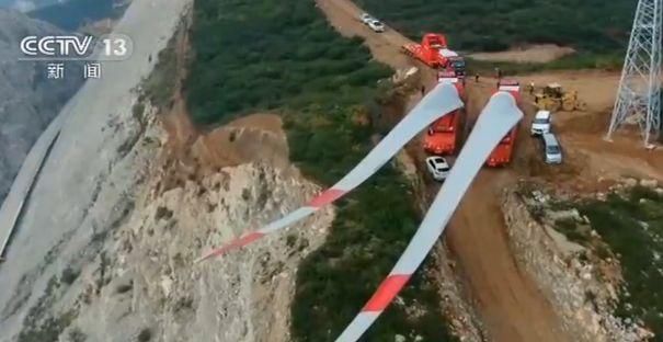 马队长告诉记者,这是他们运输的第7个叶片,随后还有50个风力发电机的叶片,需要继续运输上山。 他说:“什么时候叶片都卸下来了,心才算真正落地。”