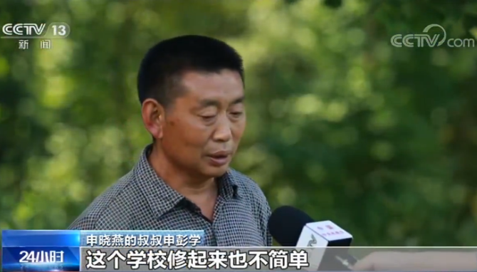 申晓燕的叔叔 申彭学:这个学校修起来也不简单,还是从毛路上,靠人工扛和挑材料上来后,才找人装起来。买的瓦背也背够了。