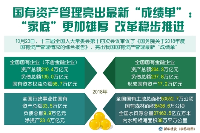 23日,十三届全国人大常委会第十四次会议审议了《国务院关于2018年度国有资产管理情况的综合报告》,亮出我国国有资产管理最新“成绩单”。