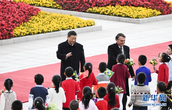 习近平欢迎博索纳罗首次访华,感谢他在中华人民共和国成立70周年之际发来热情洋溢的贺电。习近平指出,中国和巴西分别是东西半球最有代表性的新兴市场国家和最大的发展中国家。中巴建交45年来,双方始终相互尊重、平等相待、互利共赢,成为发展中大国团结合作、共同发展的典范。当今世界正经历百年未有之大变局,但和平、发展、合作、共赢的时代潮流没有变,中国、巴西等新兴市场国家整体崛起的势头没有变,中方从战略高度和长远角度发展中巴关系的政策没有变。当前,中国和巴西都处在国家发展的关键时期,我们要总结过去、展望未来,开辟中巴全面战略伙伴关系新愿景,为维护世界和地区的和平、稳定与繁荣贡献正能量。