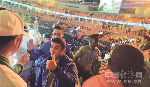 10月27日,第七届世界军人运动会闭幕式上,外国嘉宾竖起大拇指,为军运会一流的设施、高质量的服务点赞。