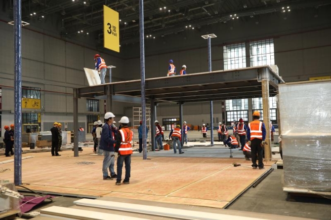 第二届进博会正在进入场馆搭建的最后冲刺阶段。 李茂君摄