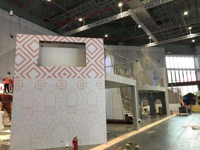 从搭建现状看来,意大利展台是为数不多的“两层建筑”。以商业和旅游景点作为主要设计的灵感来源,意大利展台选择创立一个“小城市”的概念,遴选了极具意大利特色的标志性著名历史遗迹元素,融合了模块化和多功能性的设计理念,将文艺复兴之国的千年意蕴浓缩在256平方米之间。