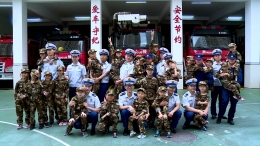消防员林源在即将退队,与队友寒暄时