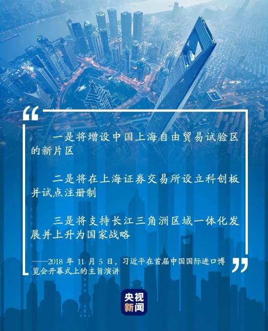 为了更好发挥上海等地区在对外开放中的重要作用,2018年11月5日,在首届进博会开幕式的主旨演讲中,习近平总书记向全世界宣布了赋予上海的三项新的重大任务。