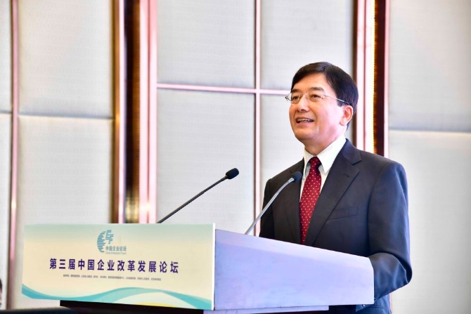 第三届中国企业改革发展论坛于11月2日-4日在山东济南举办。图为国务院国资委研究中心主任李明星发布《中央企业高质量发展报告》。记者 郭绪雷 摄