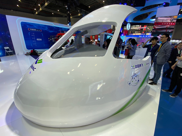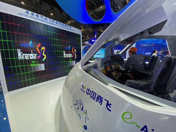 参观者可以在中国商飞体验区进行“大飞机试驾”体验。