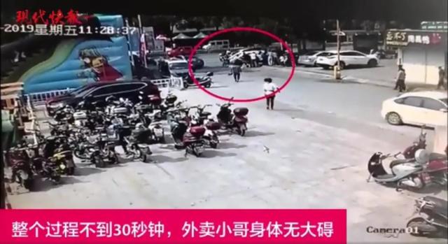 一外卖小哥被一辆轿车卷入车底,