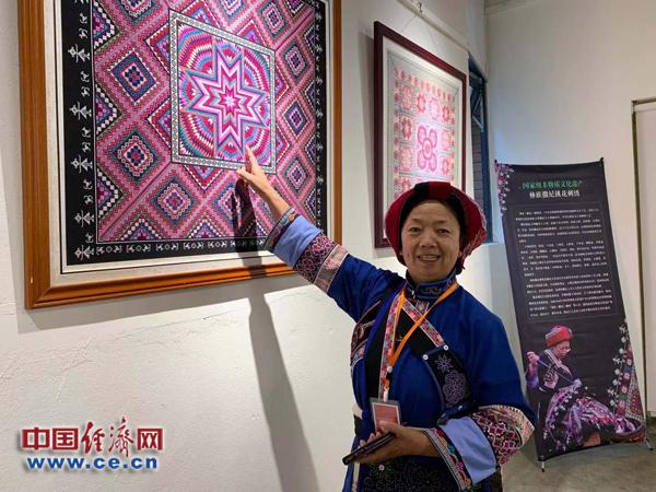 “祖国华诞·聚美非遗”纺织非遗创意精品展涵盖苏绣、潮绣、苗绣、宋锦、蓝印花、香云纱等16种传统技艺,分为“非遗+文旅文创”、“非遗+服装服饰”、“非遗+家居装饰”、“非遗+环境艺术”、“非遗+艺术创作”五个系列,多维度展示了中国纺织非遗传统文化的丰富性、多样性以及与大众生活的高度融合。(经济日报-中国经济网 记者周宇宁)
