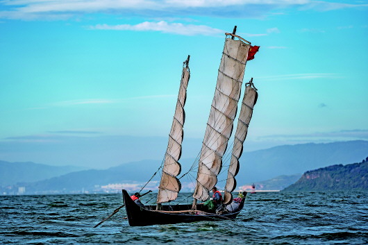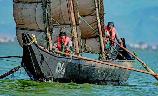 从10月16日起,滇池进入持续30天的开湖季。为了保护滇池、减少排放,当地渔民早已不再使用燃油机动船出湖捕鱼,取而代之的是一种传统的三桅帆船。眼下正是滇池一年中最适合捕鱼的季节,赶上风力适合的天气,划出港湾的渔船扬起风帆就能乘风入湖,撒开网就能顺风捕鱼。