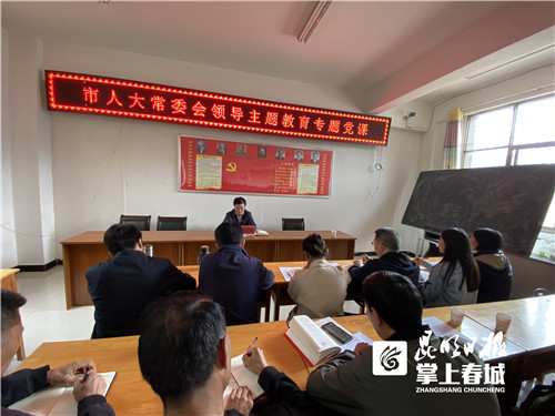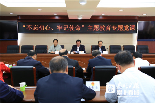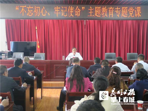 昆明信息港讯 (昆明日报 记者杜仲莹)按照中央和省委、市委关于“不忘初心、牢记使命”主题教育部署要求,日前,市人大常委会党组成员按照“四个讲清楚”的要求,立足个人调研成果,结合自身学习体会和收获,分别讲授了专题党课。市人大常委会党组书记、主任拉玛·兴高给机关全体干部职工讲授“做习近平新时代中国特色社会主义思想的坚定信仰者、忠实实践者”专题党课,市人大常委会党组副书记、副主任金志伟,党组成员、副主任戚永宏、马凤伦、毕惠芝,党组成员郭子贞、苏宇、何健升,党组成员、秘书长吴庆昆分别以“以党的政治建设为统领,做合格的党员干部”“不忘初心、牢记使命,努力争当人民群众的知心人、贴心人、暖心人”“深刻领会加强党的全面领导与全面加强党的建设”“坚定理想信念,牢记使命宗旨,扎实推进民族自治地方立法工作”“守初心者行必远”“尊崇党章,践行初心使命” “不忘初心,牢记使命”“守初心、担使命,争做合格党员”为主题,到所在的党支部、分管联系的部门、基层挂钩联系点行了专题党课讲授。