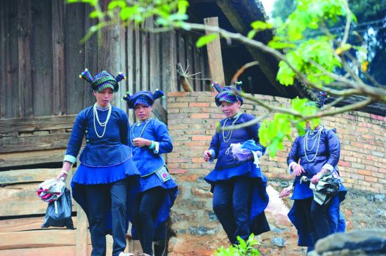 不知谁喊了一声,车在一个小山坡上停了下来,随行的人指着一条大河对面雨雾中的寨子,说那就是广南者兔马碧。那是一片依山而建、面河而居的瓦房,呈现出一种神秘的青黛色的美丽。据说这个停车的位置是拍摄马碧全景最好的角度,我身后顿时响起一片快门声,仿佛这些躲在大山皱纹里的山寨就是专为镜头而生的,每一次随意的拍摄都可以到城市的摄影大赛上获个什么奖,因为像马碧这样的寨子,看平面的图片就能嗅到空气的喷香和生态的清新。