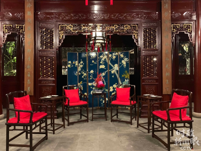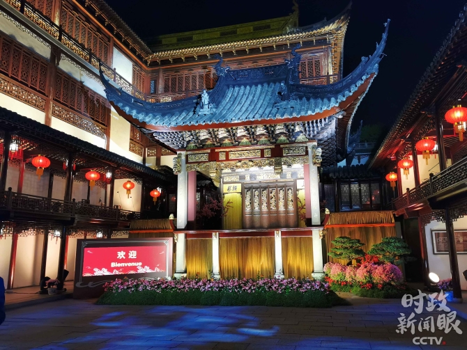 △豫园是江南古典园林,始建于明代。这是当晚两国元首夫妇落座的玉华堂。(央视记者石丞拍摄)