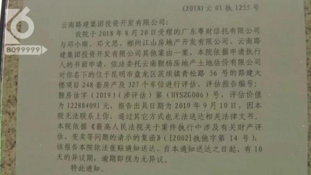 而在11月4号,一张昆明市中级人民法院发布的执行通知,让业主们更闹心了。