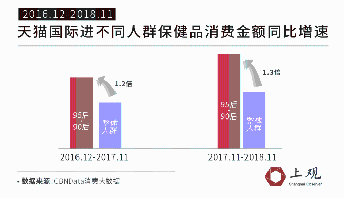 在狂飙的进口产品消费中,年轻消费群体的力量不可忽视。2017年,天猫国际的90后、95后消费者人数占45.2%,2018年这一占比更超过50%。