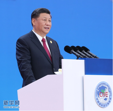 11月5日,第二届中国国际进口博览会在上海国家会展中心开幕。国家主席习近平出席开幕式并发表题为《开放合作 命运与共》的主旨演讲。 新华社记者鞠鹏 摄