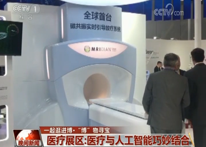 这是医疗展区,在第二届进博会上,医疗展区的展览面积比去年增加了1.5万平方米,但仍然是“一展难求”,共有200多个医疗领域的新产品、新技术在这里发布,数量是首届进博会的两倍,医疗与人工智能的巧妙结合成为展会的一大亮点。
