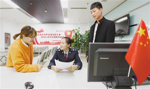11月1日,国家税务总局河北保定市竞秀区税务局服务人员在为民营企业办理业务并讲解税收优惠政策。 张丽茹摄(中经视觉)