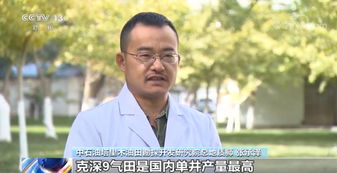 中石油塔里木油田勘探开发研究院总地质师 张承泽:克深9气田是目前国内开发最深的气田,气藏的埋深接近8000米,在8000米这个深度上,克深9气田是国内单井产量最高、开发效益最好的气田。