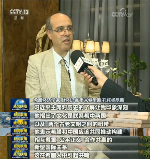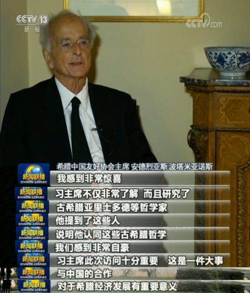习主席在署名文章中指出,要促进文化交流合作,持续扩大两国人员交往,从两国悠久的文明中汲取源源不断的滋养,做文明对话的表率。希腊中国友好协会主席安德烈亚斯·波塔米亚诺斯表示对此印象深刻。