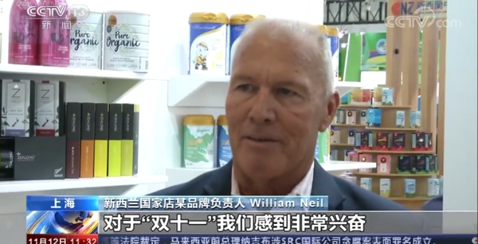 新西兰国家店某品牌负责人 William Neil:对于“双十一”我们感到非常兴奋。几个月之前,我们就通过海运、空运等将我们的产品运往中国,比之前计划中的数量多了很多,确保有足够的产品在“双十一”销售。