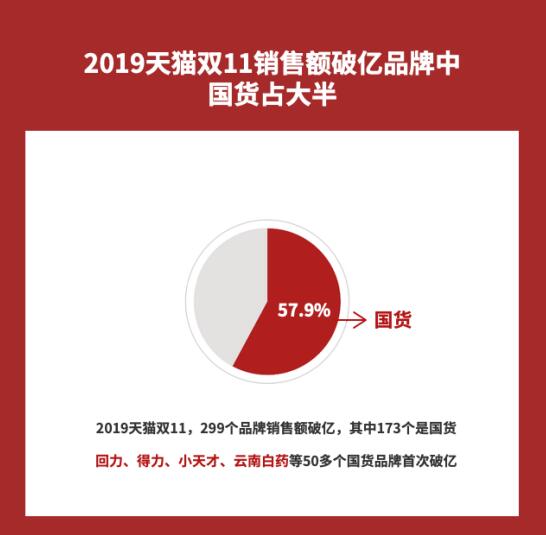 昆明信息港讯(昆明日报 全媒体记者廖晶蓉)国货一创新,光芒谁都挡不住。天猫双11数据显示,代表着上一代人青春记忆的国货品牌,重新活跃起来了:双11当天,共有299个品牌销售额超过1亿,其中,有173个是国货品牌,占比近六成。回力、得力、云南白药、匹克等50多个国货品牌,更是首次超过1亿。