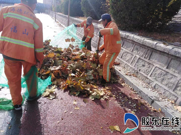 记者从烟台市城管局环卫管理中心了解到,风雨过后,落叶满地,市区环卫单位立即行动,组织人力、车辆清扫树枝落叶累计100余吨,快速恢复市区环境卫生,全力保障行人、车辆通行安全方便。