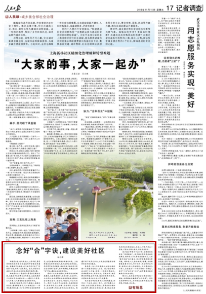 11月15日,人民日报报道了昆明市的基层社会治理工作,报道认为,党的十九大报告提出,加强社会治理制度建设,完善党委领导、政府负责、社会协同、公众参与、法治保障的社会治理体制,提高社会治理社会化、法治化、智能化、专业化水平。昆明在党的十九届四中全会提出的——建设人人有责、人人尽责、人人享有的社会治理共同体,问题上,发动群众共同参与,把基层是一切工作的落脚点做到实处,因地制宜攻克难点痛点,形成发展亮点,让居民有更多获得感、幸福感、安全感。报道全文如下: