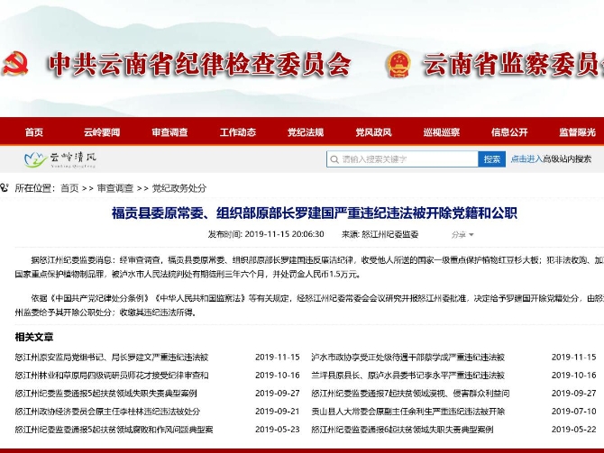 福贡县委原常委、组织部原部长罗建国严重违纪违法被开除党籍和公职