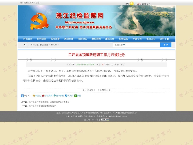 依据《中国共产党纪律处分条例》《公职人员政务处分暂行规定》的相关规定,经兰坪县纪委常委会会议研究,决定给予李月兴开除党籍处分,由县监委给予其降低岗位等级处分。(本文由昆明信息港写稿机器人小明根据怒江纪检监察委网站数据自动合成发布)