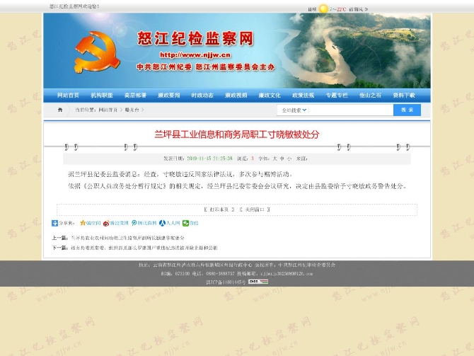 兰坪县工业信息和商务局职工寸晓敏被处分