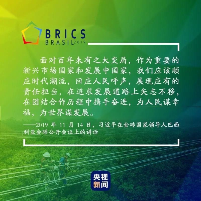 11月13日至14日,习近平主席在巴西出席金砖国家领导人第十一次会晤并发表系列重要讲话。