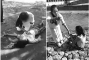 看到两个人正抱着孩子在路边哭